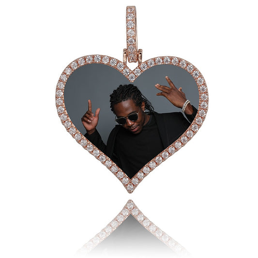 TOPGRILLZ Men's Custom Made Photo Heart Medallions Necklace & Pendant With 4mm Tennis Chain AAA Cubic Zircon
